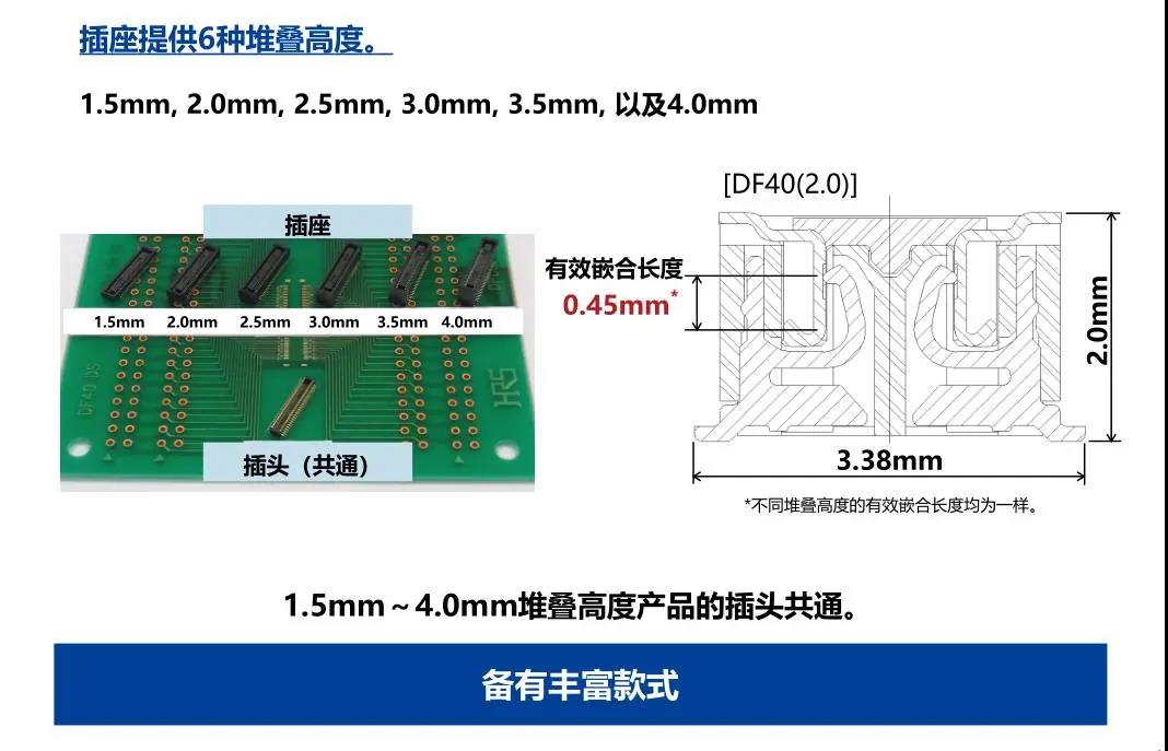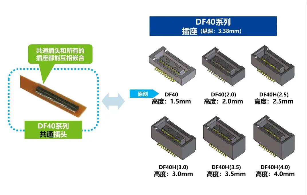 DF40 Series丨0.4mm间距,1.5-4.0mm高,板对FPC连接器