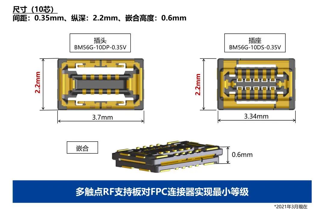 1 . 多触点RF支持板对FPC连接