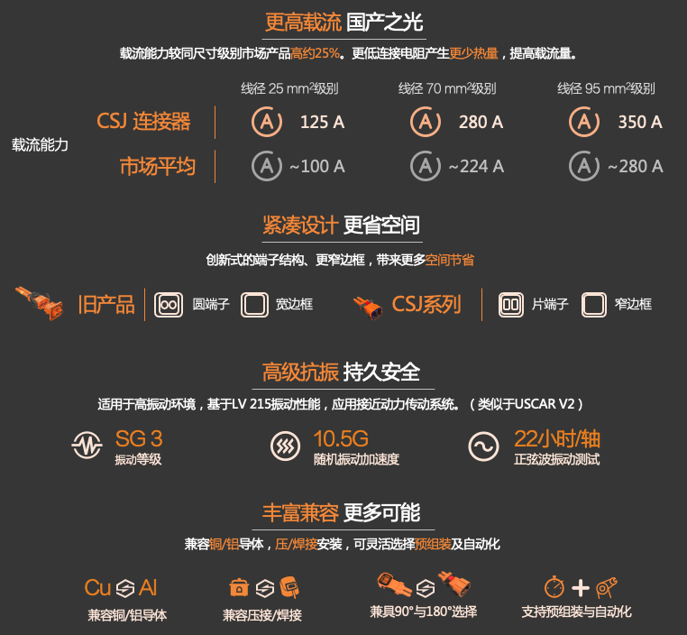 从100A出头到350A,客户可根据自身实际需求随心选择。而作为划时代意义的电动汽车新时代匠心之作,CSJ系列还具备四大优势,在各方从100A出头到350A,客户可根据自身实际需求随心选择。而作为划时代意义的电动汽车新时代匠心之作,CSJ系列还具备四大优势,在各方面解决客户的后顾之忧:面解决客户的后顾之忧: 组装托付,放心无忧